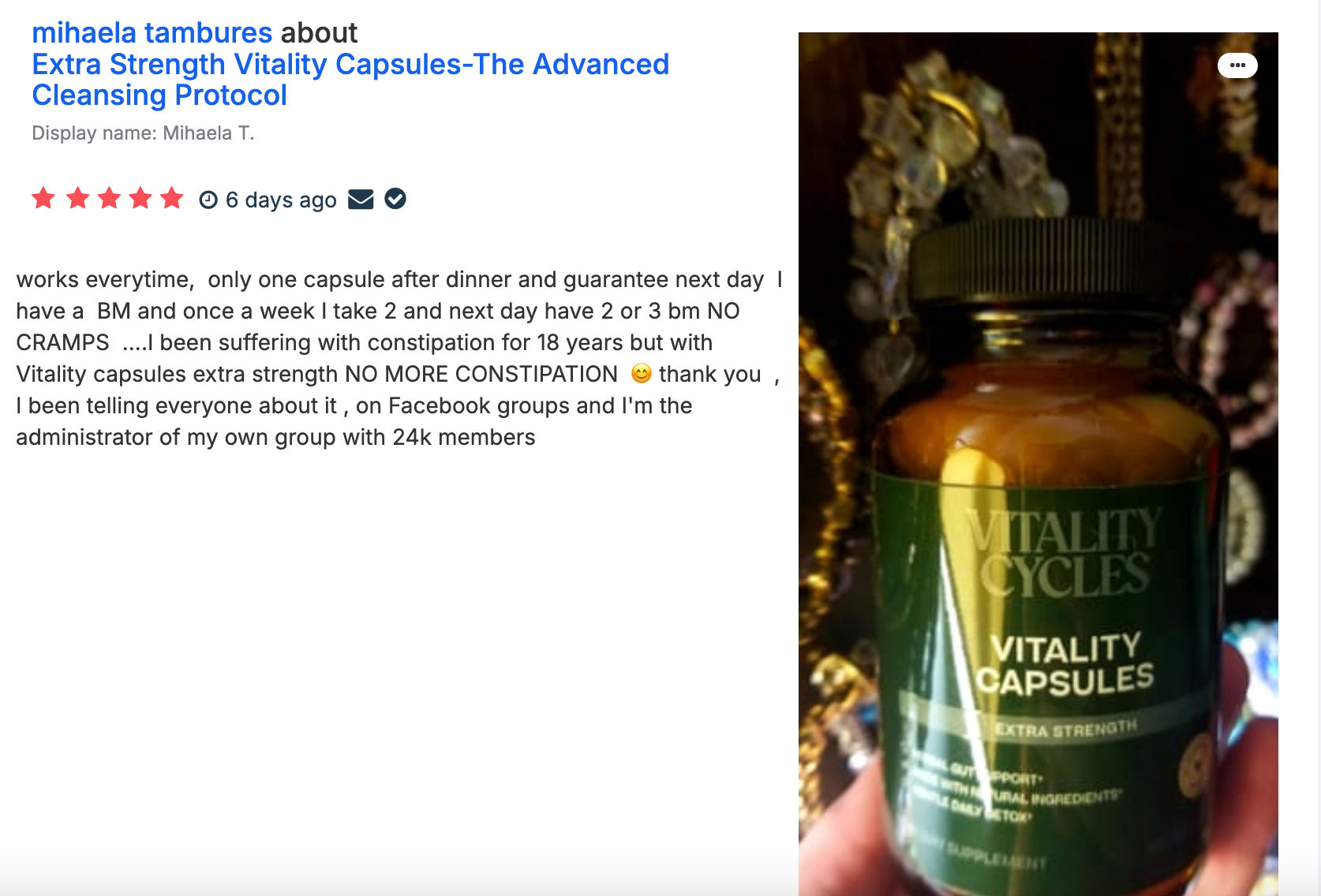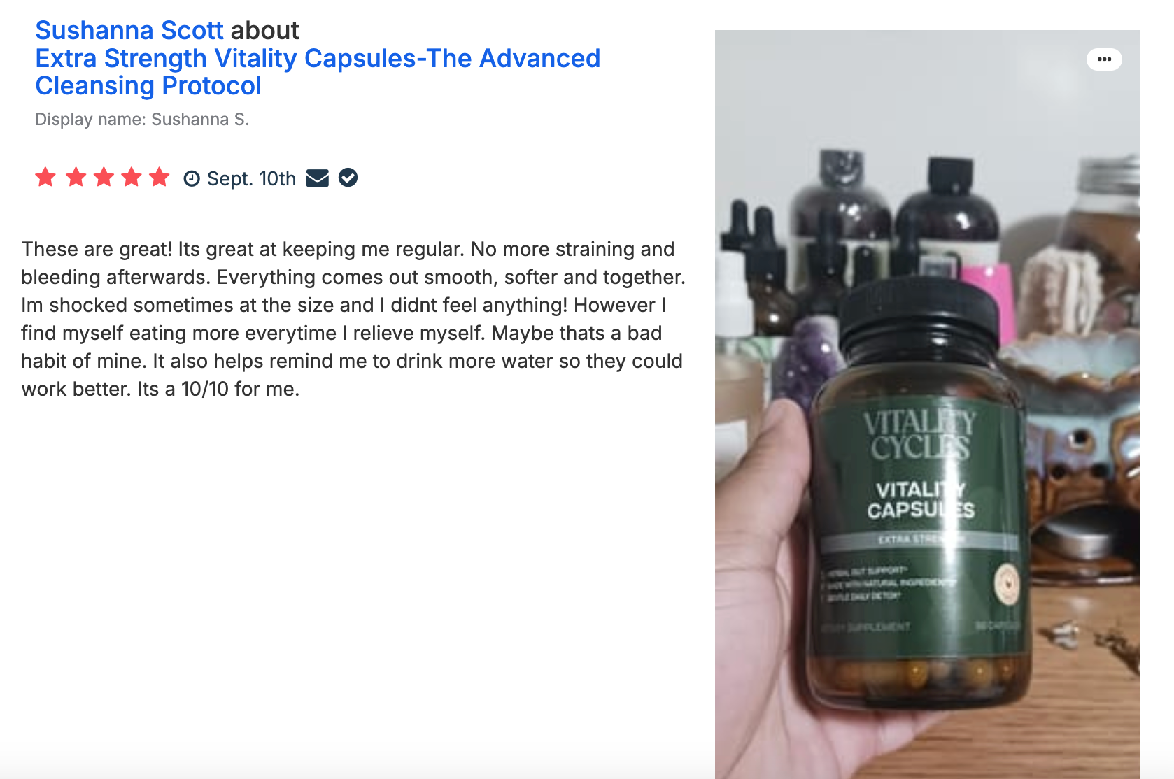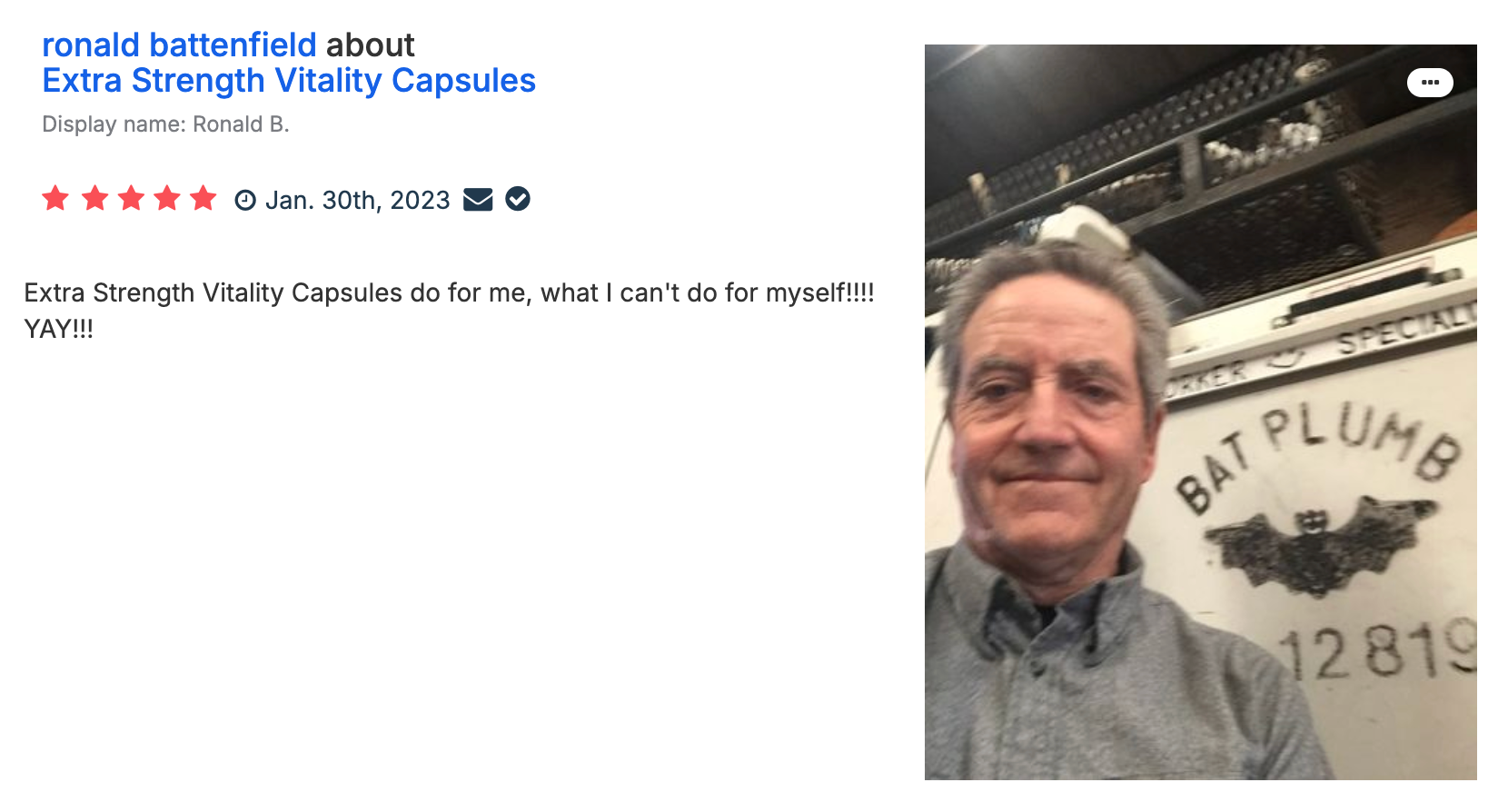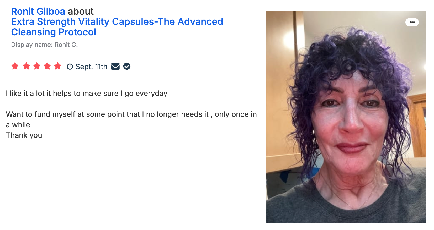 “I cant imagine my life without vitality capsules! Game changer! I feel so much better and stronger and more lively! Thank you so much for creating this genius product !!!!”