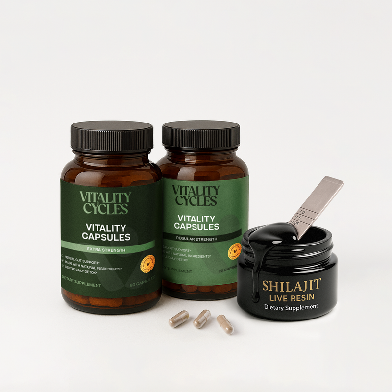 Vitality Capsules are a natural herbal blend designed to gently support regular bowel movements and daily cleansing, helping your body release what it doesn’t need.