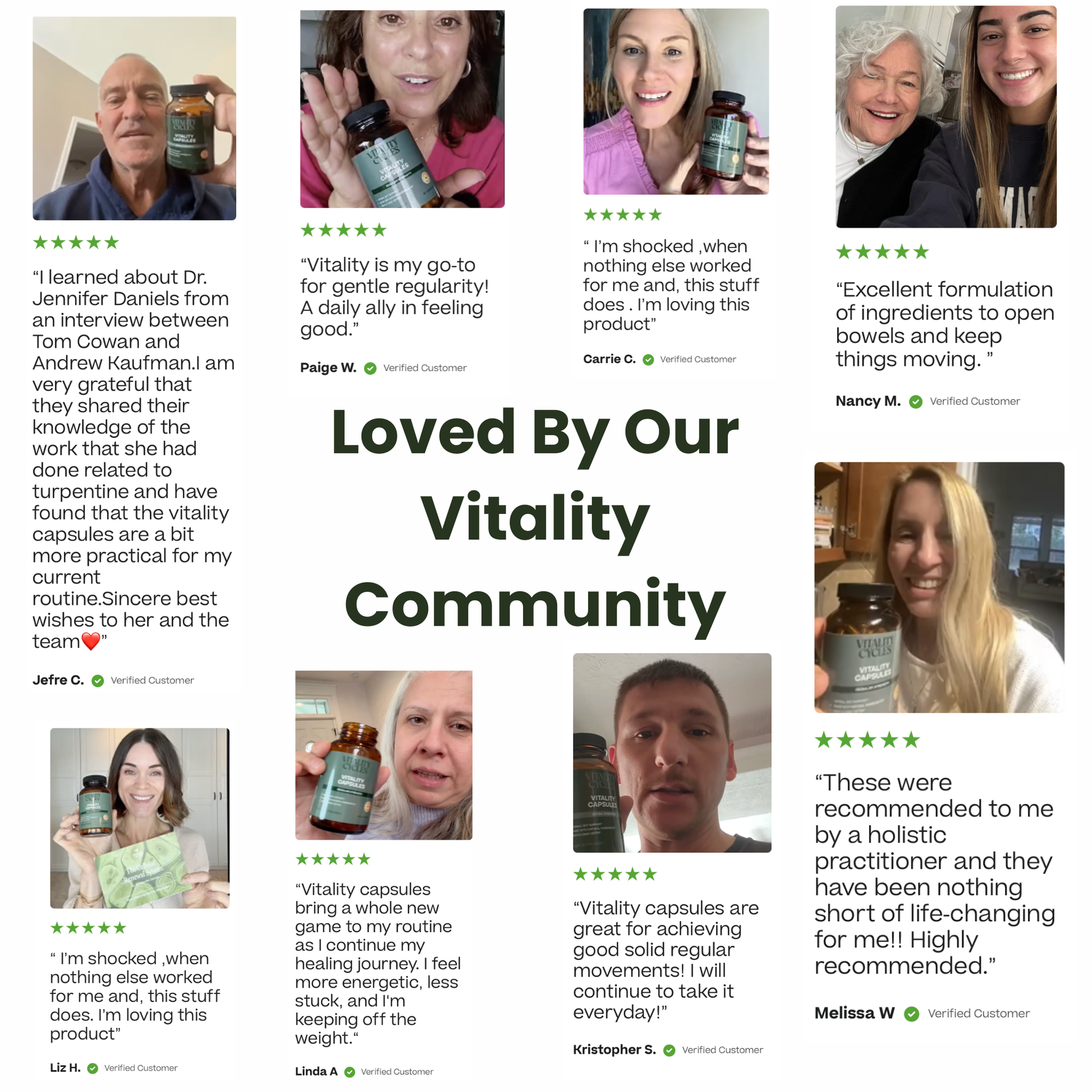 “I cant imagine my life without vitality capsules! Game changer! I feel so much better and stronger and more lively! Thank you so much for creating this genius product !!!!”